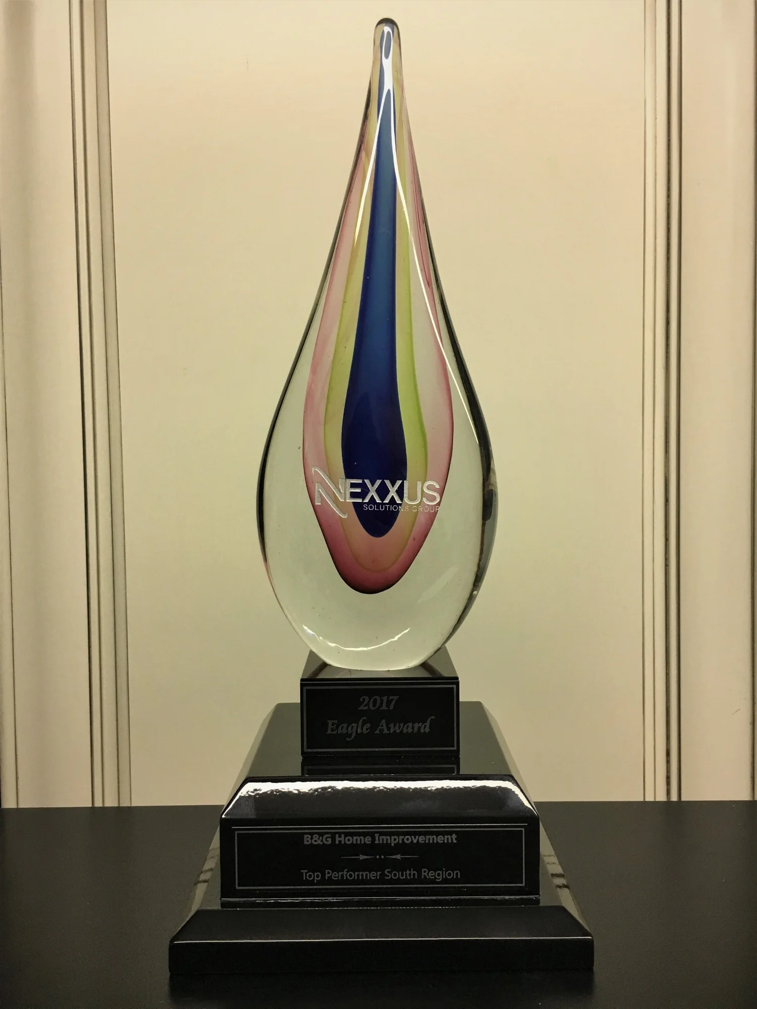 B&G Home Improvement, Inc. received Nexxus Solutions Group's "Eagle Award." It is the priority of every employee to leave our customers feeling respected and happy with the work done. It is an honor to have received one of six top performance awards nationwide; and each day we strive to maintain this level of performance.